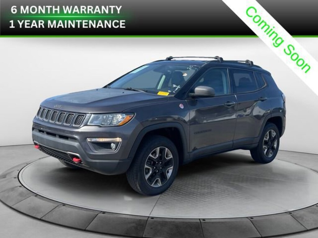 Clean CARFAX. CARFAX One-Owner. This vehicle's CARFAX history report is available for free on our dealer website. Granite Crystal Metallic Clearcoat 2018 Jeep Compass Trailhawk 4WD 9-Speed Automatic 2.4L I4 **HEATED LEATHER SEATS**, **4x4**, **4CYL**, **MP3 / IPOD COMPATIBLE!**, **BLUETOOTH HANDS-FREE CALLING!**, **BACK UP WARNING SENSORS!**, **REAR VIEW CAMERA!**, **RECENT OIL CHANGE!**, **AUTOMATIC MULTI-ZONE CLIMATE CONTROL!!*, **BLIND SPOT MONITORING SYSTEM!!**, **HEATED STEERING WHEEL!!**, **STEERING WHEEL MOUNTED CONTROLS!!**, **INTERACTIVE TOUCHSCREEN DISPLAY!!**, **POWER LIFTGATE!!**, **REMOTE START!!**, **ANDROID AUTO/APPLE CARPLAY**, 4WD.
